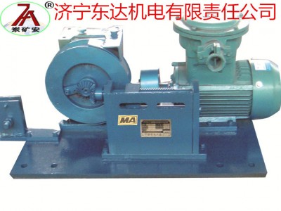 JF-150ZD跑车防护装置用收放绞车(煤安证号:MCK110036),是跑车防护装置的配套部分,作为控制挡车栏拦网的开启和关闭装置使用。当矿车接近挡车栏时,收放绞车使挡车栏拦网提起;当矿车经过挡车栏后,收放绞车使挡车栏拦网关闭。如果发生跑车事故,挡车栏拦网处于常闭状态,可将矿车准确可靠地拦住。