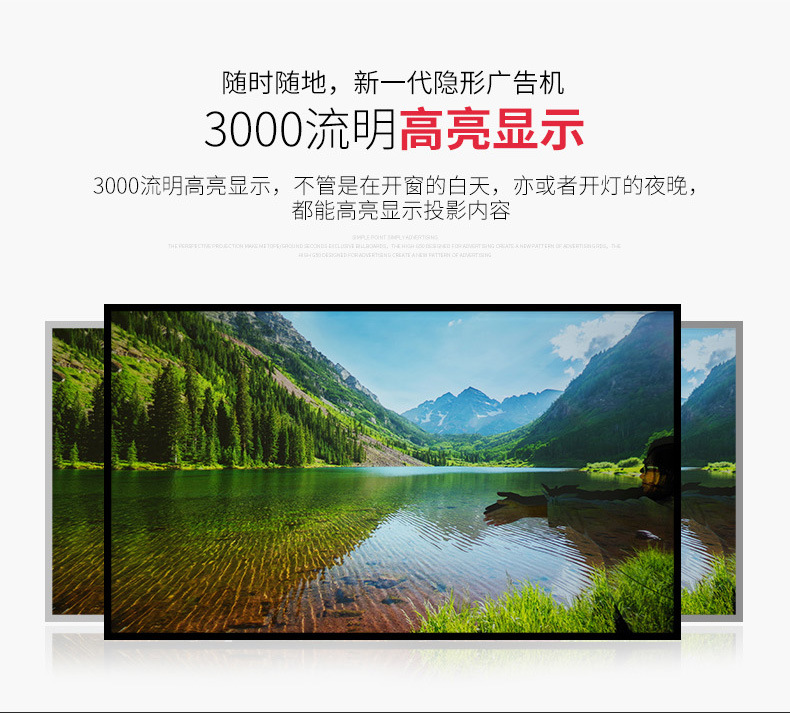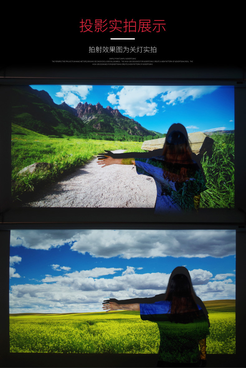 网络微型投影机广告机的投影图像可以适合场景在在30-120寸间调整,达到较好效果。