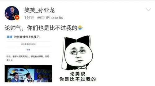 笑笑自己得知上了《天天向上》之后,也是非常的开心,在微博里发了状态说:“论帅气,你们也是比不过我的”看来德云色的粉丝们还是非常有眼里,一眼就认出了笑笑的表情包!