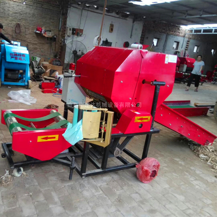 2019新款青贮打捆包膜机是在第二代青贮打捆机,包膜机的基础上改进的;是目前国内仅有的能将揉搓机揉搓后的玉米秸杆自动进行打捆包膜的设备是目前先进的青贮设备。,输送带进料打捆机的设备,本产品经技术人员精心设计,避免了其它打捆机捆扎后草捆密度小,包膜后容易霉烂的现象,捆扎后的玉米秸杆密度大,便于包膜青贮;同时对其它干鲜草类同样能进行捆扎,包膜机采用数控装置,操作简单,设定层数,完成自动停止,大大节约人工。