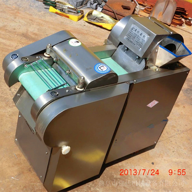建达牌多功能切菜机采用模拟手工切菜的原理,采用变速结构和离心式切片机构等。先进技术研制成的复合式多功能切菜机,广泛适用于各种软、硬根茎、叶类蔬菜及海带的加工、可以制片、块、丝、丁、菱形、曲线等多种花样。离心桶作用:切圆形蔬菜切为片状(例如:土豆、萝卜、红薯等)(刀的的材质是才用的是铬钢,高硬度耐磨,输送带采用无毒橡胶,输送带下方带有毛刷,可以防止蔬菜和输送带粘连)。