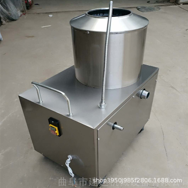 小型家用土豆去皮机 马铃薯磨皮机价格 食堂土豆削皮机山东曲阜建达机械厂为大量土豆整体去皮的土豆去皮机。经过多次的改进,不仅能够胜任不同形状、品种的土豆,甚至土豆凹陷处的小坑也能处理干净,几分钟便能处理十几斤土豆;效率高,极大的节约了人力。