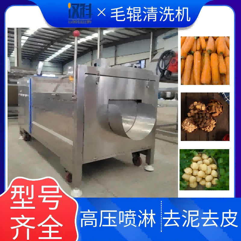 2、毛辊去皮清洗机清洗滚轴全部为采用高级尼龙丝制作,丝毛经久耐用,增加清洗量,洗刷干净,产品光滑亮泽。
