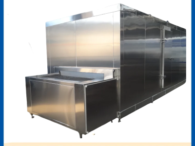 隧道式速冻机是一种结构较为简单的速冻机,按使用的输送带形式的不同可分为网带式和板带式。