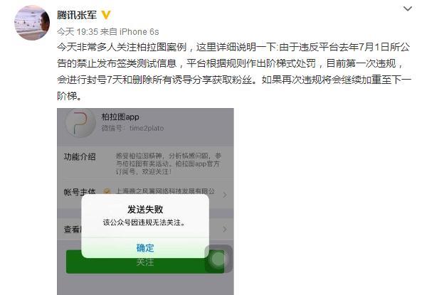 但是火爆仅仅持续了短短一晚,今天早上此公众号又因为“诱导分享“被微信限制功能。主角柏拉图APP一夜成名又被封,背后显示出的究竟是微信的可怕还是人性的可怕?